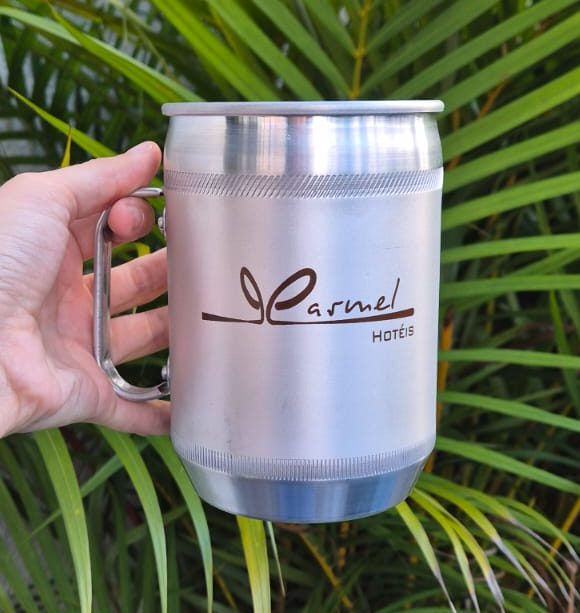 E nossa caneca térmica tem uma grande área de gravação para mostrar bem a sua logo.